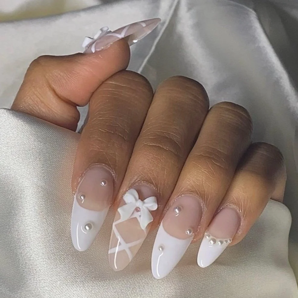 (Intricate designs such as chrome French tips, 3D nail art, mix and match designs, French tips with design work.)